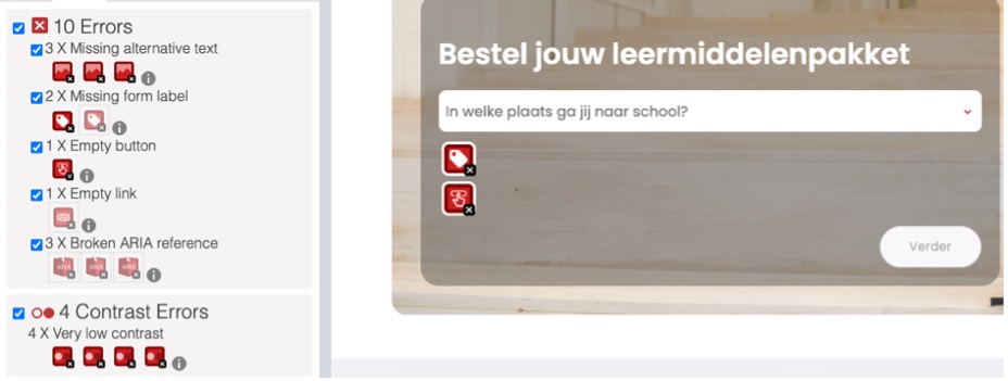 Voorbeeld: Browsers hebben een handige extensie genaamd WAVE, die direct de toegankelijkheidsproblemen in beeld brengt.